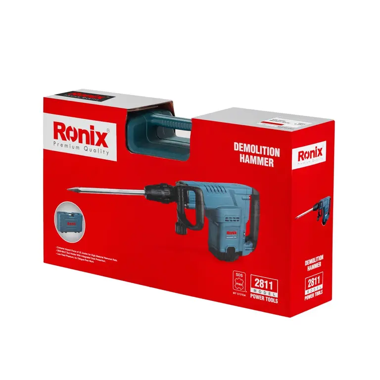 چکش تخریب قدرتمند با قابلیت مانورپذیری بالا از نیازهای همیشگی در امور ساختمانی است. چکش تخریب 11 کیلویی 2811 رونیکس نیز با دقت و تمرکز بر همین موضوع طراحی و تولید شده است. کافی است کلید ضد غبار آن را فشار دهید تا موتور 1800 وات آن با انتقال قدرت به بخش شاتون و پیستون، توان ضربه 25 ژولی را با تعداد 1900 ضربه بر دقیقه به سیستم قلمگیر پنجشیار آن انتقال داده و به راحتی به سختترین مصالح نفوذ کند.