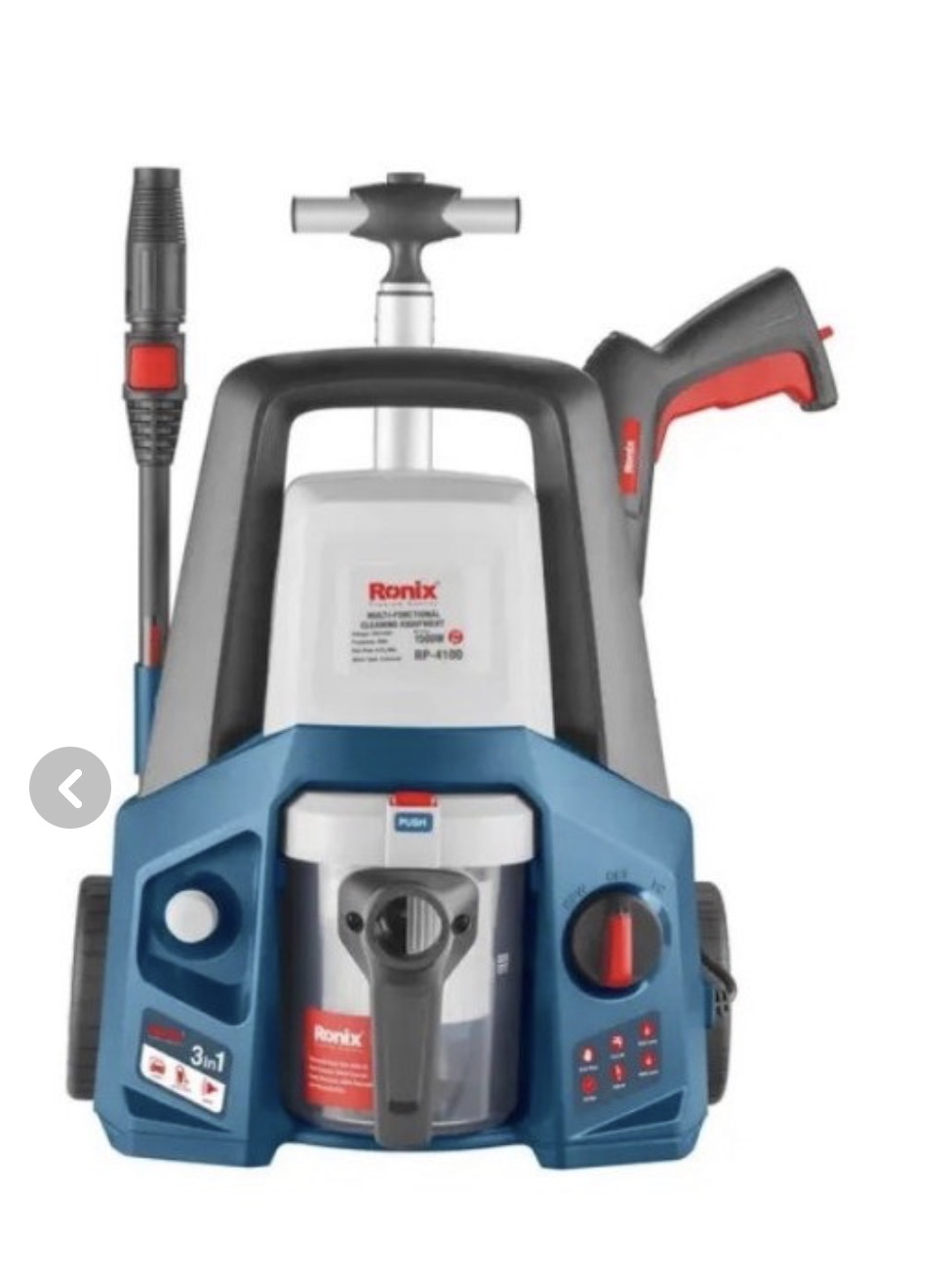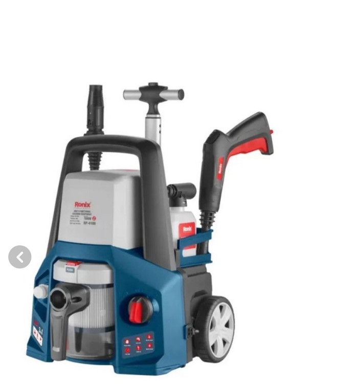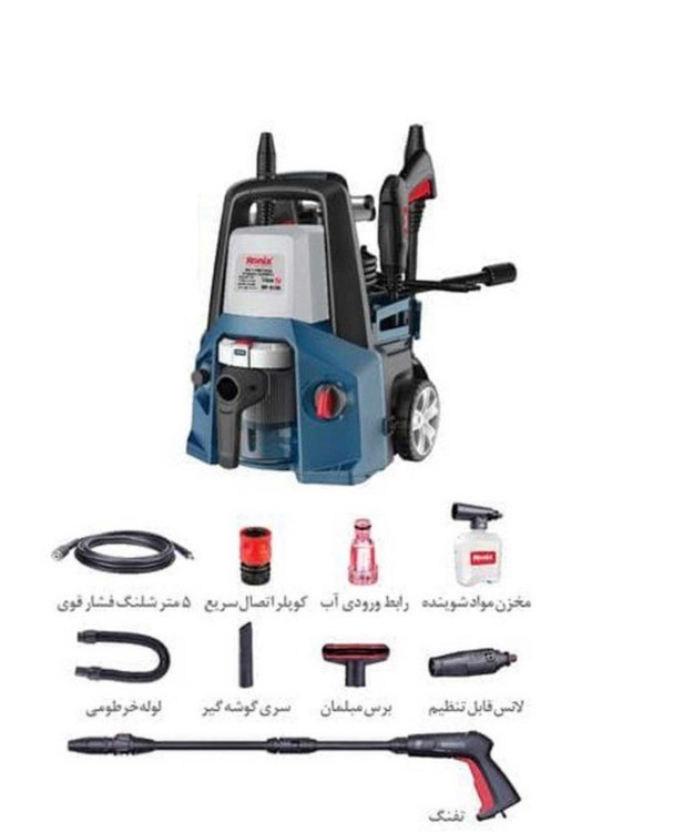 مخزن مواد شوینده، رابط ورودی آب، کوپلر اتصال سریع، 5 متر شلنگ فشار قوی، لانس قابل تنظیم، برس مبلمان، سری گوشهگیر، لوله خرطومی، تفنگ